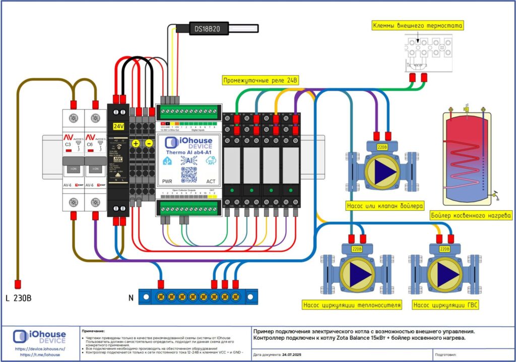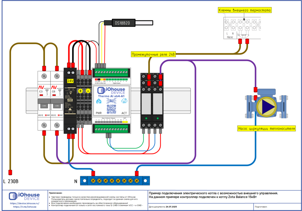 Подключение датчика и управления котлом