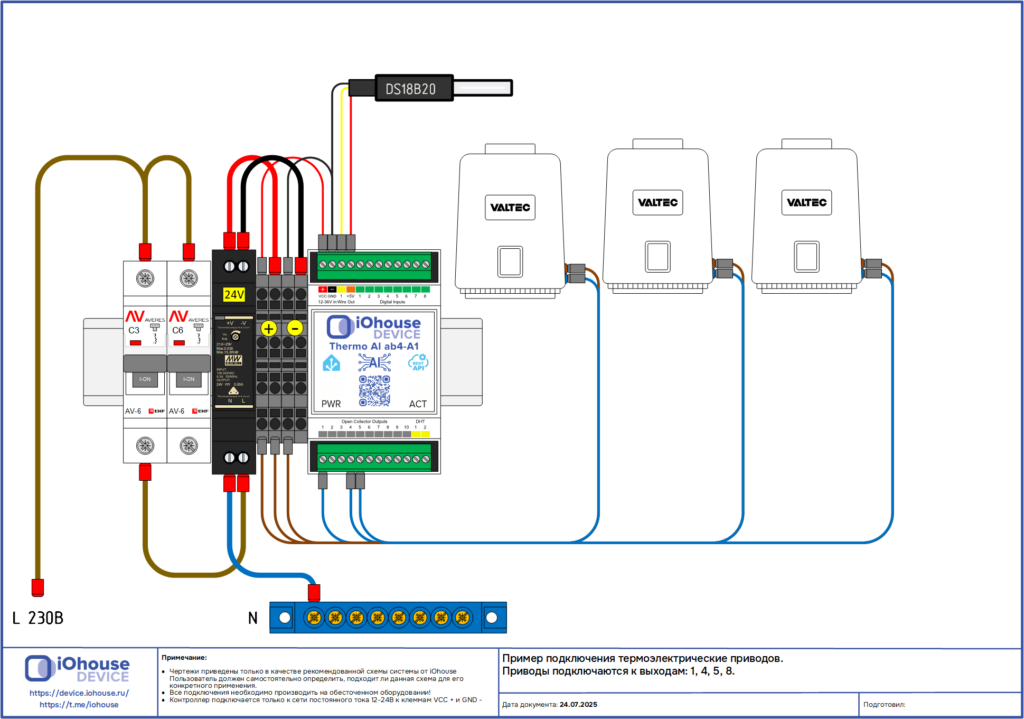 2.1 Пример подключения термоэлектрические приводов.